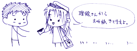 昨日理絵さんからイラストとDBマンションの続きが沢山届きました! DBマンションは合計26枚! 処理とレイアウトにちょっと工夫が必要なのであまり早くはできませんが、なんとか毎日少しずつアップしていきたいです。左の絵はお手紙にさらっと描いてあったもの。二人があまりに可愛かったのでここにこっそりアップです♪このサイトももうすぐ満2歳になります。発足のきっかけはDB文庫が閉鎖されるという話が持ち上がったからでした。他の方の作品も読みたかったし、自分が始めた連載も終わらせたかった。過去ログだけは復活させる‥‥とういお話でしたが、過去ログの状態だとやはり読みにくい‥‥。それでご自分ではサイトをお持ちでなかったひゆーさんにお声をかけてみました。あの時ひゆーさんがYesと仰らなかったら・・・このサイトはなかったかもしれません。 デザインはともかく(汗)、ブラウザで見ることのできるモノ(笑)を作るのは当時の私にとっては容易でした。でもそこに並べる作品を作り上げるのがどれだけ大変かは想像がつきました。だから作家さんは複数の方がいいなぁと思っていたのです。「興味はあるけどHP作るのはちょっと・・」とか思っておられる作家さんをお誘いできればお互いの幸せ(笑)に繋がるはずだ・・・と。そんなこんなでラバさんやゆうさんにも加わって頂けることになったわけです。 当初から作家さんごとに分割はしない方針でした。実は私ブランドにむちゃくちゃ疎くて、1つのブランド店の中に服や靴やアクセサリーまで揃ってて、それが並んでるショッピングモールみたいなのって苦手なんですねー。ジャンルを無視して出版社ごとに分割された本屋(苦笑)と同じぐらい困る。靴は靴、服は服でどっかにまとまってて欲しい‥‥(苦笑) ということでサイトも同じように考えました。まずはジャンルで分ける。素人のサイトだからお客さんにとっては「誰の」作品かというのは意味がない。むしろこのコーナーには「どんな」作品があるかを明確にした方がいいと思ってました。そしてデザインやリンクの仕方はできるだけ統一する。アクセスしやすいと同時に作るのがラクだからです。届いた作品はできるだけ早く対応することも方針の一つだったから、早く作れることは重要でした。 お店的に考えればウチはショッピングセンターじゃなくて、○○売り場って分かれてる昔の百貨店って感じでしょうか。こう考えてみるとDB文庫みたいな投稿サイトはフリーマーケット会場かな(笑) 私は誰でもどうぞというサイトにはしたくなかったので、スゴイと思った方だけをお誘いしました(大殴!) 優秀な科学者をさらってくるショッカーのようだ。やっぱり目的は世界征服だったか‥‥(爆笑) とはいえ我田引水な言い方ですが、完全にバラバラで動いてきたより効果はあったんじゃないかと思ってます。時々誰かが疲れていても(今は私です。ごめんなさい(大汗))、他の誰かが何かアップしていければ、「このサイトって何かしらあるよなぁ」と思っていただける。そうしてリピーターが増えれば、このサイトにある作品は人の目に触れるチャンスが多くなる‥‥ 満2年を目前にして当時のマーケティング戦略(へ?)など書いて見ました。単なる作品が進まない言い訳の様にも聞こえますが、一応考えていたんですってば‥‥。 2003 Aug.01:新住所伝達中
