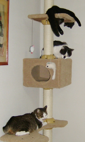 前回の日記。我が儘はどっちだとこるくに怒られました(笑) ということで平和的解決のためキャットタワーの柱とかにまたたびの実をこすりつけてみた。ズルだ(爆笑) ちなみにタワーのてっぺんのおかしな格好の物体は、人形じゃないです。マールです。なんて格好だ。