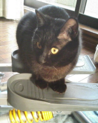 ステッパーに乗るマール。毎度のことですがマールはうまく撮れないです。何がなにやら分からない生き物か、不気味な生き物かどっちかになっちゃう(汗)。マールは一応黒猫ですが、微妙に茶色が混じってるんですよね。ご近所に似たような毛色で似たような鼻をしたしっぽの短い雄の黒猫がいて、我が家ではその子を「マルパパ」と呼ぶことになりました。ぜったいあれがマールのパパだと思う。マルパパはずっと前からご近所に居る子で、首輪も時々変わるしどこかで飼われている子と思うのですが、数年前、彼がこるくに言い寄っていたのは秘密です。こるくは昨夜もでっかい白茶の雄猫に迫られていたのを救出しました。白茶の方は唸っていなかったので、あれは言い寄られていたんだと思う。 こるくちゃんは雄なんだよ?。 最近マールは人(というか私)がトイレやオフロに入ると、なぜか一緒に入りたがります。ドアの外でミーミー鳴いて、あげくの果てにジャンプしてる……。小さい頃、閉まったドアの前でどうしたらいいか分からずにジャンプしたら、前足がドアの隙間に入って落下の勢いでドアが開いたことがあるんですよ。以来彼女はドアを開けるためにはジャンプするもんだと思ってます。すごい高くジャンプしますよ、マジで。 こちらが入る時にさっと入ってしまうこともよくありますが、トイレだと脇に置いてある台の上でごろごろ言ってるし、風呂はフタの上でごろごろ言ってます。何が言いたいんだお前。 あとは出社のために化粧をしようと洗面台に向かうと、既にボウルの中にすっぽり入ってたりしますね。ありえません。「どきなさい」と言うと「うにゃっ」と言ってボウルの中でくるりんこしてみせます。濡れるだろー!! 本人まったく気にしてません。まあ流石に水をじゃーっと出すと逃げていきますが。日頃からボウルの中が好きなワケじゃなくて、あくまで私のジャマをしたいだけだと思われます。 「なにいってるの、お手伝いでちょっ!」 さて、今日も会社休んでました(笑)。1週間休みくれると言われたけど、結局2日か。例によってけっこう家事で潰れるんですが、平日だと土日より家事をやる気になるのはなぜだろう(笑)。 今日は野村証券で株を移管するのにどうするか聞いてきました。昔、日経テレコン目当てで口座を作り、トピックスとか多少買ってそのままずーっとうっちゃっておいた(テレコンだけ使ってた(汗)この口座。で、そのままよく調べもしないで株まで手を出してたのですが、手数料がむちゃ高くて。面倒でずるずるここまで来てしまったのですが、ふとやる気になったので移管してみたいと思います。 で、新たなネット証券会社の口座を作るにあたり、郵便貯金の口座があった方が便利そうなので作ってきました。暗証番号がテンキー入力になっていたのにびっくり。進んでるなー(君が遅れてるの)。昔から暗証番号を紙に書くのイマイチだよなと思ってたので。これで郵便局の定期が昔みたいに有利ならもうちょっとオカネを入れるところですが、ちょっとな。外貨のために作ったソニー銀行が実は定期の利率が良いことがわかり、円定期はそっちに集約してます。 2006 Mar.31:しない決心