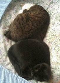 日曜日の夜からおかしな現象が発生してました。マールがこるくにケンカを売ってる。こるくの顔を見ると唸るんですよ。こるくの方が対抗しないので収まってますが、こるくが何かよそ猫の匂いを付けてきたのかと思い、いやがるこるくをとっつかまえてずいぶん拭いたのですが改善せず。でもぐりは気にしてないんだよなー。マールは見た目で判断するウェイトが低いのか……。そういやマールは兄ちゃん達に比べてやたら瞳がでかいのですが、実は集光率が悪いとか。 こるく兄ちゃんに対してはカワイコぶりっこするのが常だったのに、いきなり家から追い出しにかかるんだもんなぁ。こるくは困っておどおどして逃げ回ってるし。でも遊びの時は反撃するのにこういう時は反撃しないから面白い。えらい兄ちゃんだ。そして怒りまくりのマールはぐりにまで唸り出す始末。いやはや参りました。 月曜日は朝、マタタビタオルをそれぞれに与えてから会社に行きました。マタタビ粉、そのままやるよりタオルに刷り込んであげた方が便利なんです。マタタビそのものを食べないで済むし、よだれも防止できるし。 で今日は会社休みました。1年の有給休暇のうち半分は猫のために休んでる気がするな(苦笑)。この状況がまだ続くようなら獣医さんに行ってフェリウェイでなんとかならないか相談してみようと思ってたんです。でも今朝になってマールがぐりの傍に寄り添ってこんな感じになってたので一安心しました。湿気を飛ばしてからしまおうとしてた布団の上で串団子状態(笑)。常時臨戦態勢だったマールがウソのようです。こるくに対しても普通になった。やっぱ人にはわからん匂いが問題だったのかなぁ。 しかし、マール視点で考えればこの3日間はすごいドラマだったと思いますよ。ある日いきなり大好きなお兄ちゃんが違う化け物になって帰ってきて、「こいつ、こるく兄ちゃんの皮をかぶった偽物よ!」っていくら言っても誰も信じてくれない。で、数日後今度はほんとのお兄ちゃんが帰ってきた……。ああ、感動のハッピーエンド。ボディ・スナッチャー系の映画にできそう(笑)。 こるくみたいに情けない甘え顔は、本人しかできないと姉御と親分は思ってますけどね。 予期していなかったお休みだったので、年末にやりきれなかったタンスの整理とか、リサイクルゴミまとめたりとか、車の一ヶ月点検とか行ってました。そういや新車にかかっていたポリマーシーラントの効果にびっくりです。我が家って隣に生産緑地がある関係で土埃がけっこうひどいのですが、車がマジで汚れてないんです。洗車しようとしてびっくりしました。いくらだっけなポリマーシーラント。毎年やってもらったほうがいいかもしれない。 ちなみにさくらさんと名前を付けたはずのダイハツMOVE。結局「スカラベくん」と呼ばれてます。頭部が……先端から前輪にかけてのずんぐり具合がどう見ても虫なのよー(おいおい) 2007 Jan.18:10Km/hはまだ大変