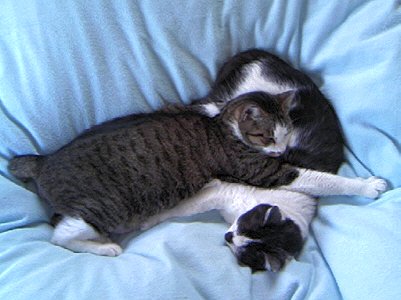 先日通販生活に載っていたUVカットボレロってのを購入したのですが、こいつがなかなか便利でした。買い物行く時などTシャツの上にぱっと羽織っていくのですが、長袖なのに本当に涼しい!流石だ。スーパーの生鮮食料品売り場などノースリーブだと寒い時がありますが、これ着てるとそれも防げます。実はけっこう通販生活に弱い私です。あれこれ買っているうちに送料タダにしてくれるスペシャル会員になってたり(笑)。 最近の一番のヒットは「薬用カピトリーノ」というヘアトリートメントですか。私の髪は本当に水分が少ないパサパサ系なのですが、初回から驚くほどしっとりして……って、雑誌のPR文章のようでイヤだけど本当なんだもの(笑)。以前はオイルとかトリートメントワックスとか必須でしたが、1週間このトリートメントを使ったら不要になりました。シャンプーしてトリートメントしてそれで終わり。実際に美容院の先生にも驚かれましたよ。髪が痛んできたなぁと言う方は、本当にこれ、おすすめです。 さて近況です。1、2日と以前作ったシステムのリリースがあったのですが無事済んでくれました。おかげで今日から4日間、ゆっくり休めそうです。嬉しい。とはいえ掃除してスポーツクラブ行って……っていたって普通のお休みになりそうですがね。あ、明日は弟家族が遊びに来ます。先週旅行中に録画しそこねた電王とゲキレンを見に(爆笑)。大人はたぶん昼間っからワインかっくらっておしゃべりですねー。 そして今日も10Km走ってきました。前後のウォーキングも入れるとランニングに1時間半もかかってしまいますが、iPod Shuffleのお助けもあってかなり快感なので。 スポーツクラブってコースによって使用できる時間帯が違います。平日昼間だけ会員とか土日と平日夜だけ会員とか色々あります。でも! 祝日の昼間は正会員しか使えないので我々正会員にとってはねらい目。空いてて有り難いのです。GWだからガラ空きと思ったらそうでもなくて、みなさん頑張ってます。我々もGW4日めにして既に3回行ってる。4月はあまり行けなかったからあと2回は行くぞー!(笑) 2007 May.04:子供と猫